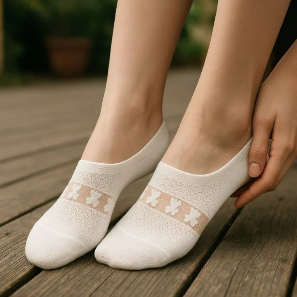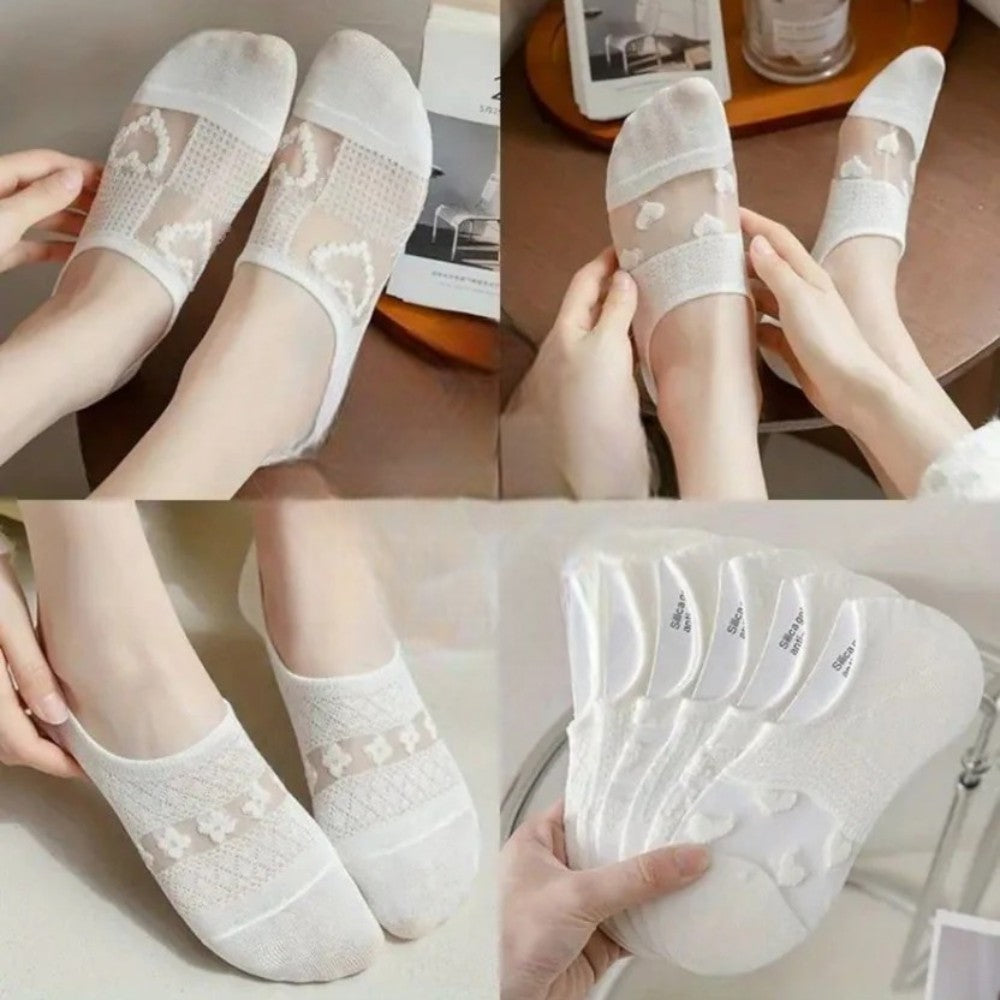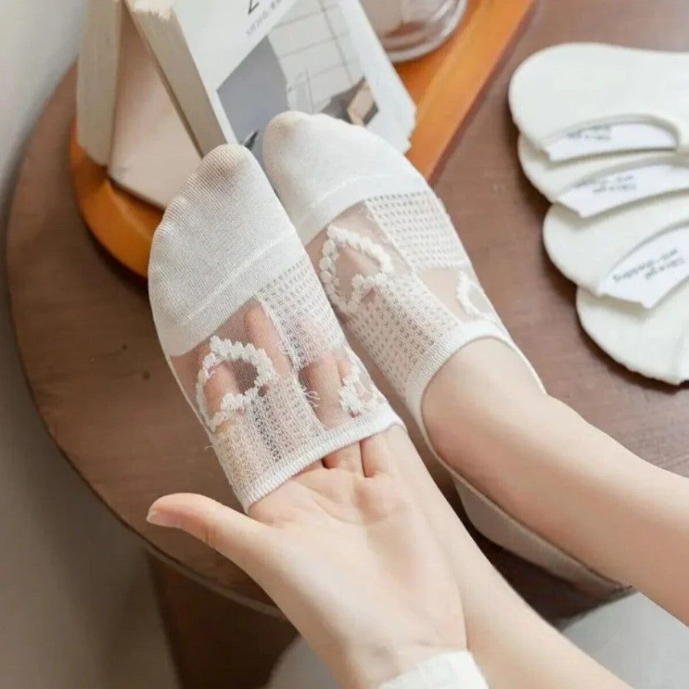 Kadın 5 Çift Premium Kalite Kalp Desenli Tül Çorap Beyaz
