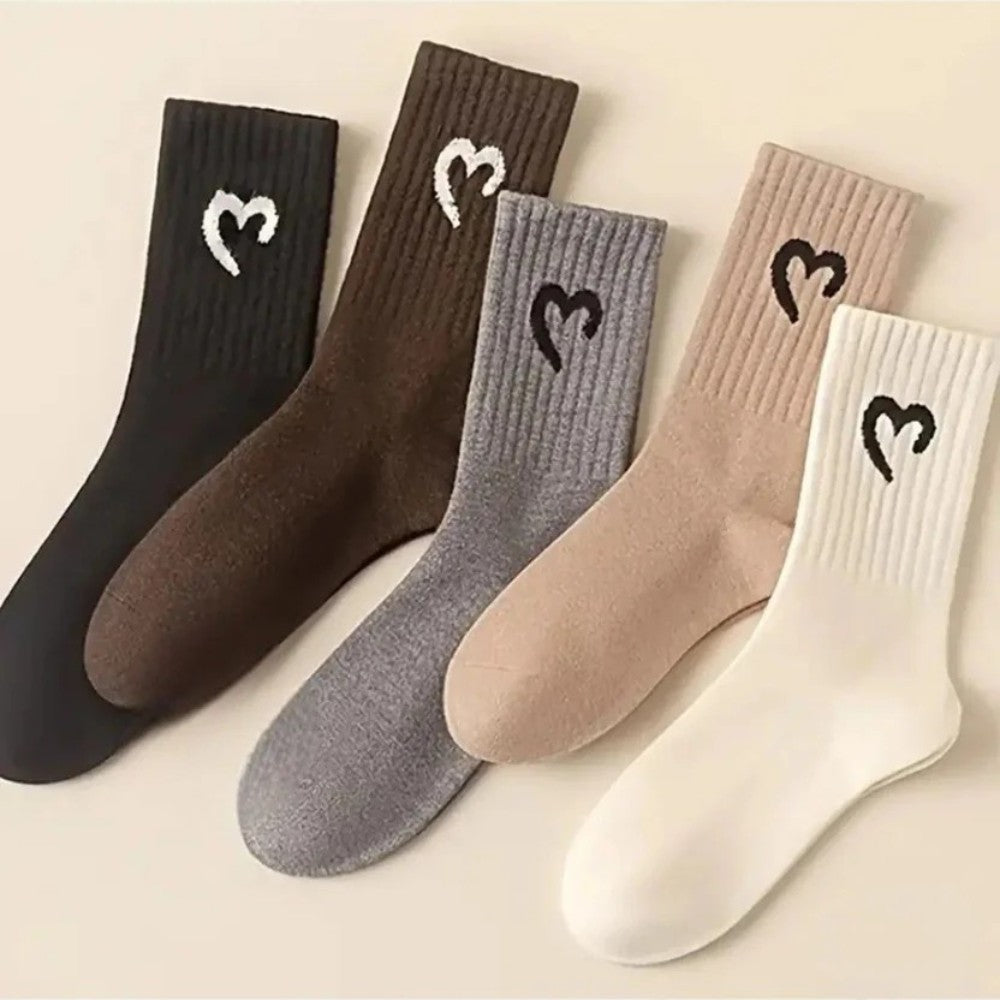 Kadın 5 Çift Premium Yüksek Pamuklu Yeni Kalp Desenli Casual Çorap Çok Renkli